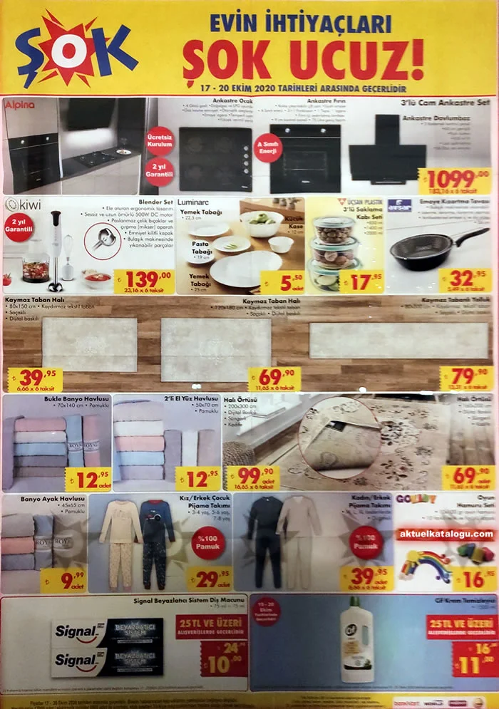 تتضمن العروض فرنة غاز أربع عيون مع شفاطه بسعر 1099 ليرة تركية مع كفالة سنتين وخلاط كهربائي بسعر 139 ليرة وطقم سفرة من خمس قطع ومقلاة ومناشف وسجاد أرضية بسعر ال 69 ليرة وطقم بيجامات ولادي وطقم بيجامة للكبار ومعجون أسنان سيكنل وسائل جيف .