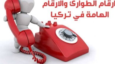 نقدم لكم في هذه المقالة جدول بأهم ارقام الطوارئ في تركيا وقائمة هواتف مهمة في تركيا وارقام الدوائر الحكومية التركية،…